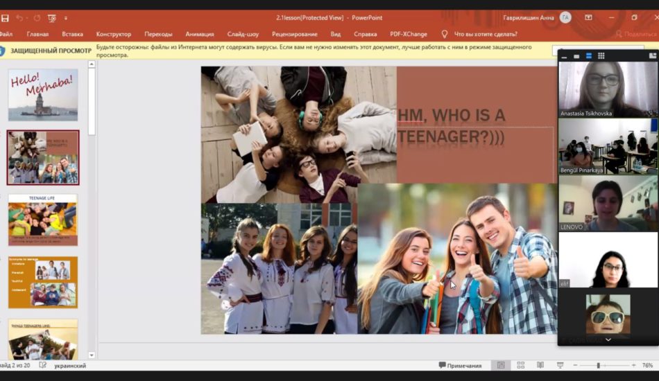 У межах угоди про співпрацю між Прикарпатським національним університетом імені Василя Стефаника і Коледжем Бейсукент (м. Анкара, Туреччина) 45 кращих студентів факультету виконували індивідуальні завдання з лінгвістичної практики у вигляді он-лайн уроків та англомовних дискусійних клубів із учнями однієї із найкращих приватних шкіл країни. Здобуваючи незабутній міжнародний педагогічний досвід, наші студенти проявили себе як розумні, креативні та відповідальні вчителі, які активно співпрацювали із учнями 1-10 класів протягом листопада 2020 року. Студенти мали змогу успішно застосувати на практиці засвоєні культурологічні знання про систему шкільної освіти в Туреччині.