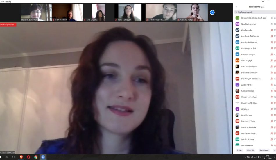 Кадровий директор ТОВ «Інвенторсофт Нордікс» Наталія Семчук розповіла про власний кар’єрний шлях, можливості працевлаштування у сфері IT для випускників факультету та необхідні компетентності, в тому числі і в галузі перекладу комп’ютерної термінології, та особистісні якості, що є запорукою успіху. Наша випускниця з приємністю зазначила, що Прикарпатський національний йде в ногу з часом, адже пропонує своїм студентам безліч опцій для саморозвитку, серед яких, зокрема, і можливість безкоштовного проходження онлайн курсів Сoursera for Campus, які можуть поглибити наявні знання, забезпечити різносторонній розвиток та стати яскравим акцентом на резюме.