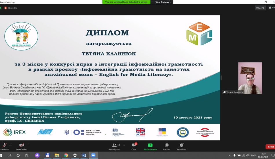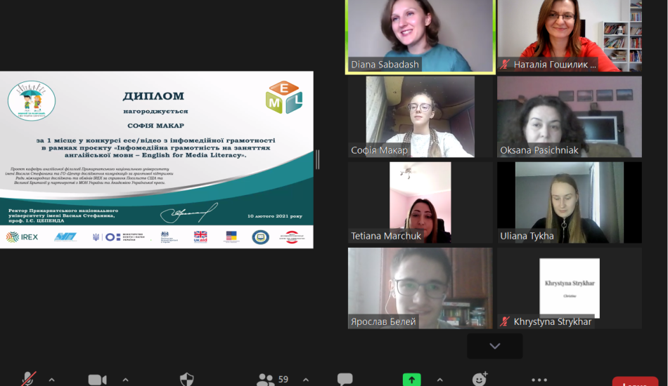 10 лютого 2021 року відбувся онлайн підсумок проєкту «English for Media Literacy – Інфомедійна грамотність на заняттях англійської мови».