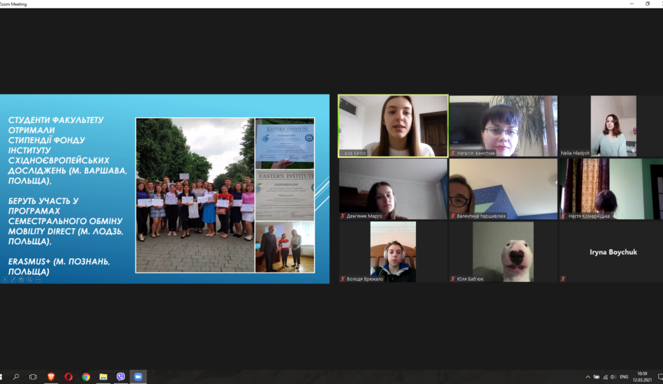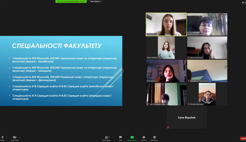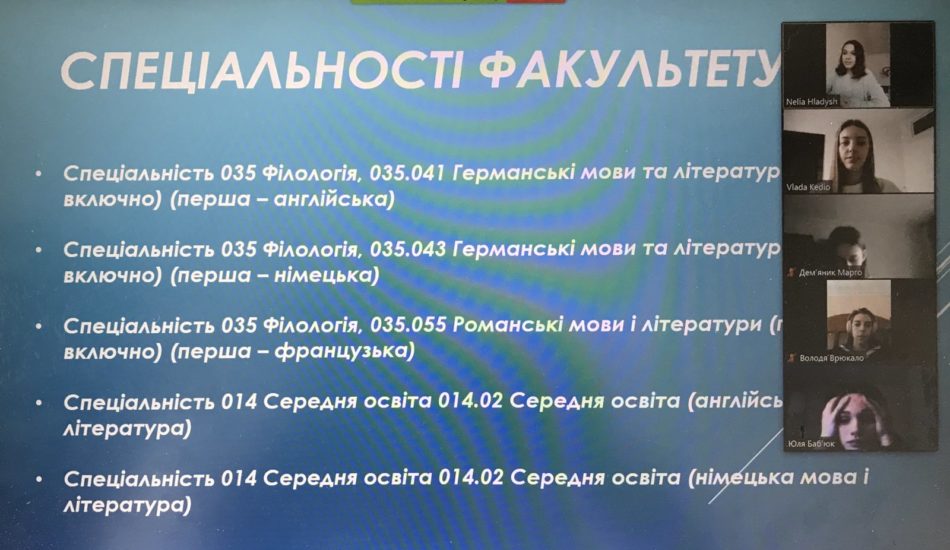 Студенти групи СОА-44 Неля Гладиш, Соломія Грибович, Владислава Кедьо, Ангеліна Сова та Уляна Слівінська разом із викладачами-методистами к.ф.н., доц. Наталією Пилячик та к.ф.н., доц. Наталією Іванотчак провели профорієнтаційні онлайн-зустрічі із учнями 10 класів Ліцею 1 Івано-Франківської міської ради.
