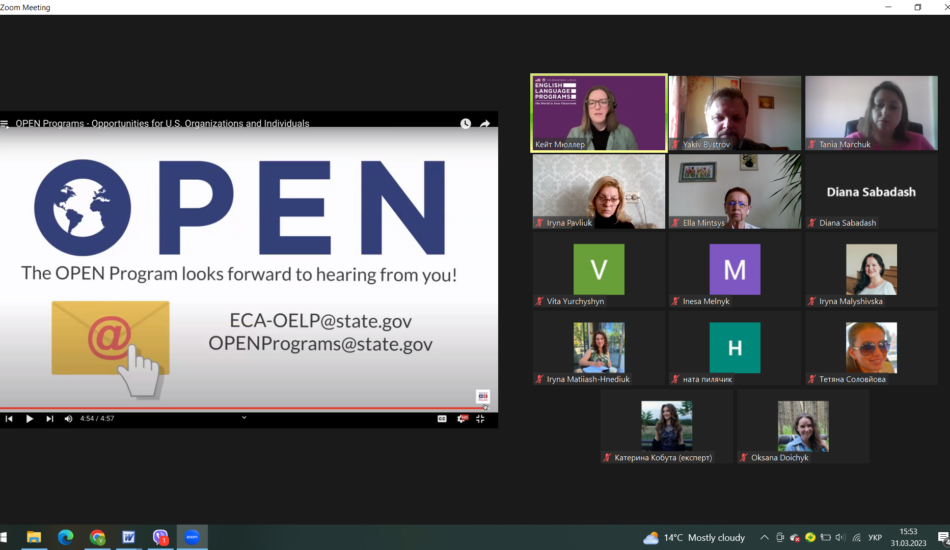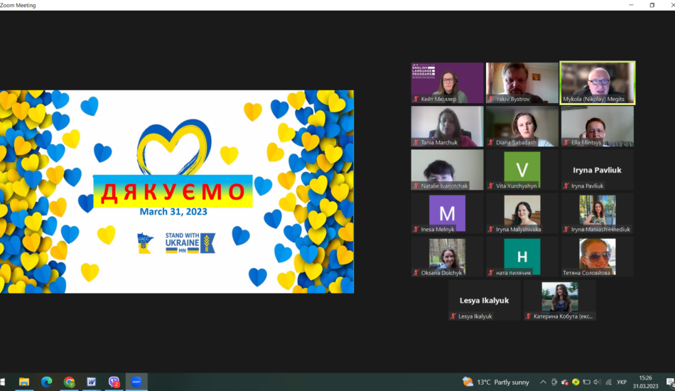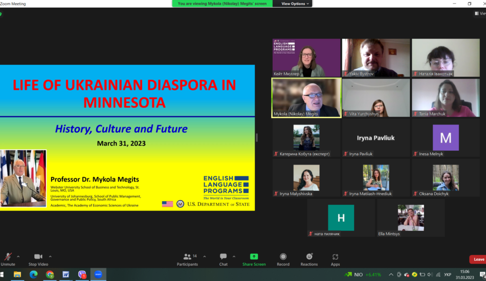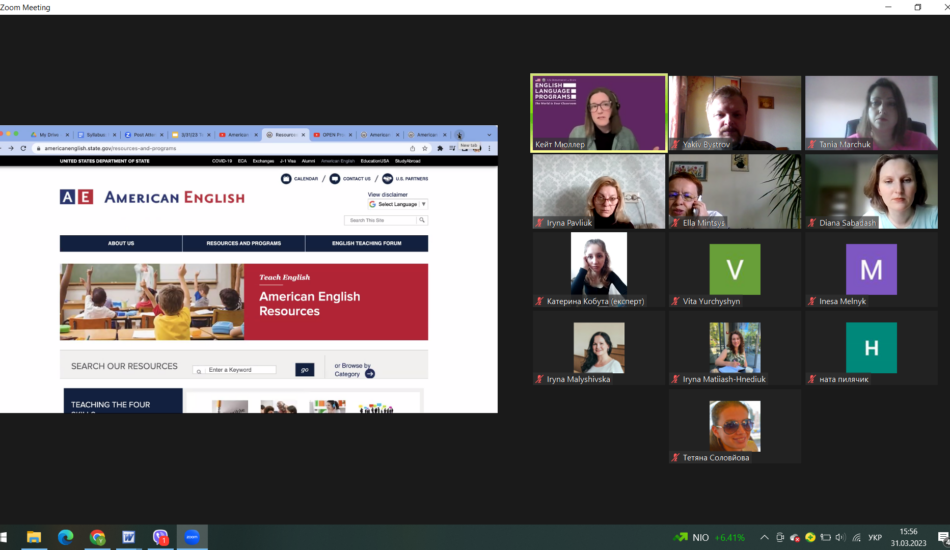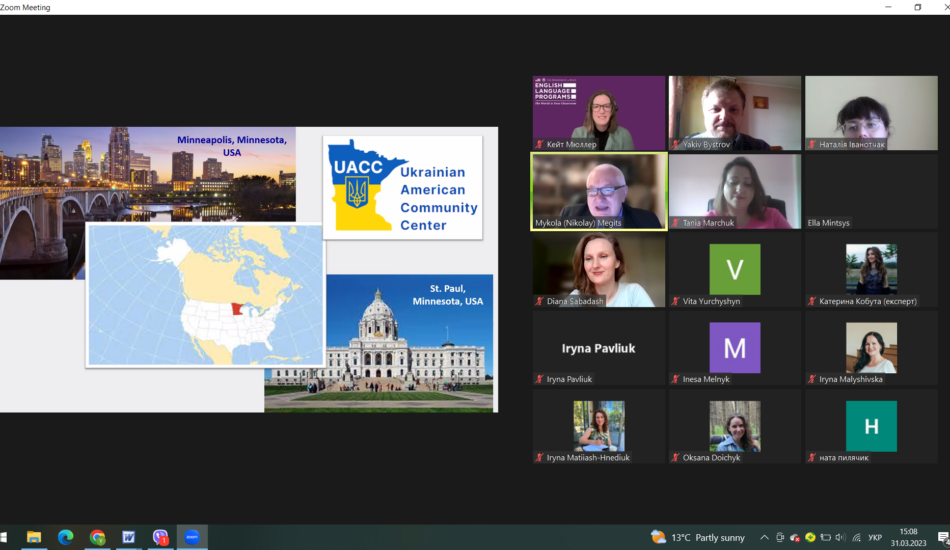 31 березня 2023 року в рамках імплементації програми Virtual English Language Educator, яка реалізується кафедрою англійської філології спільно з Регіональним офісом з вивчення англійської мови при Посольстві США в Україні (Regional English Language Office, US Embassy) викладачі кафедри англійської філології мали змогу познайомитися з представниками української діаспори в