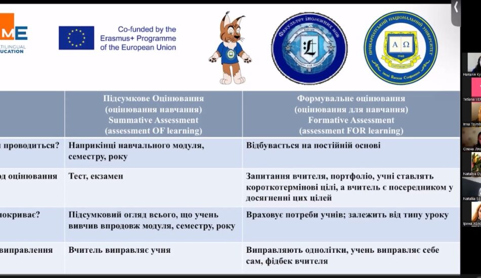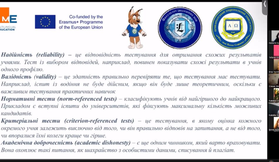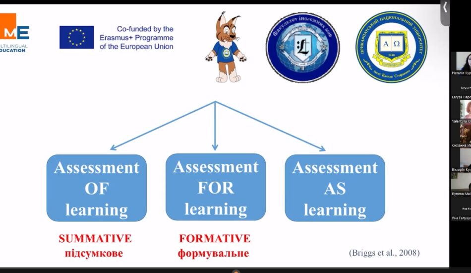 22 червня доцентка кафедри англійської філології Наталія Куравська провела воркшоп «Оцінювання й виправлення помилок в предметно-мовному інтегрованому навчанні (CLIL)» під егідою проєкту програми Erasmus Plus MultiEd «Розвиток потенціалу вчителів іноземних мов як шлях до багатомовної освіти та євроінтеграції України / MultiEd».